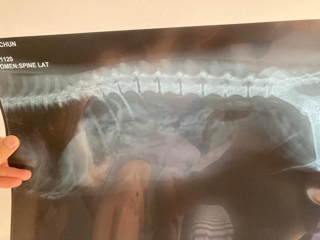 寵物主人實證分享:我家狗仔叫榛榛,在一個月前突然行唔到路,又連續幾日都唔食嘢,後來帶去睇獸醫,經照X光片後發現佢第五和第六節脊骨之間有問題,但醫生當時都未確定係咩問題,又或者需要做手術。